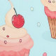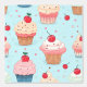水彩甘いカップケーキとさくらんぼ柄 壁紙