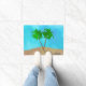 水彩画のヤシの木のビーチ場面コラージュ ドアマット