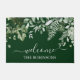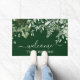 家族名水色植物緑ウェルカムドormatは、ツタ、シダおよびセージのを含ん葉だ。森の緑の背景。