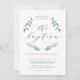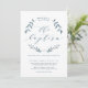 美しい青い水色の葉のモチーフに囲まれ、スクリプトを備えたエレガントこの洗礼の招待は、あなたの息子のキリスト教会への入り口に最適である。裏面は水彩模様のコーディネート青。