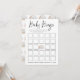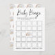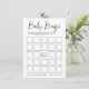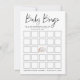 書道の台本の上に「ベビービンゴ」を、中央のビンゴスポットとして青と茶色の水色の虹を描いたかわいい赤ちゃんシャワービンゴゲームカードモダン。お母さんとパーソナライズの名前と下に沿って赤ちゃんシャワー日付。デザインは私たちの可愛い水色レインボーベビーとキッズコレクションとコーディネート。