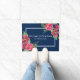 水彩赤とピンクの花濃紺 ドアマット
