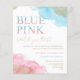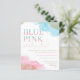 赤ちゃんシャワー性別がパーティの招待状を明らかにする。白い背景には青エレガント色とピンク色の水色の飛び散りが飾金ゴールドグリッターである。タイポグラフィ読文字ブルーピンク君は考え何だ?イベント詳細を使用して編集しユニークてパーソナライズ