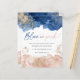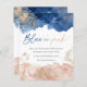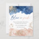 青とエレガントピンクの水色のベビージェンダーのパーティの招待状を明らかにする。タイポグラフィの文字読ブルーかピンクか?白い背景には、青とピンクの水の色が飾金ゴールドの飛び散りや埃で彩られる。完全なイベント詳細を前面と背面に追加してパーソナライズ。