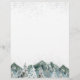 パーソナライズされた文字/名前デザイン水の色絵を描の雪の多い冬の風景と銀のグリッター雪の要素を持つ山と林フェイクの。