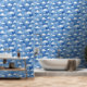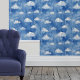水彩雲ブルー子供部屋 壁紙
