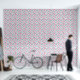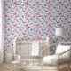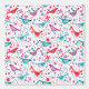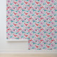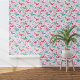 ティール(緑がかった色)ユニークグリーン、ホットピンク、水赤と白色の鳥と野花のパターン。オリジナルアートby Nic Squirrell.