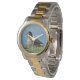 湖を背景に海岸の植物の中に座っている鴨。すべてのウォッチスタイルで利用可能。数値/ティック表示は、必要に応じて調整または削除できる。