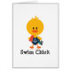 彼女の肩に投げられる珊瑚タオルを持つかわいく、おもしろいな水泳のひよこは組の水泳のゴーグルを握っている間それの白いいかりが付いている濃紺の水着を身に着けています。 これは水泳チームの泳ぐ人、水泳のコーチまたは部分である女の子または女性のためのかわいいギフトを作ります。 アートワークの© Chrissy H. Studios、LLC。 複製権所有。