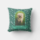 クラシックのアーチのフレームに、あなたのペットの垂直方向の写真をフレームティール(緑がかった色)で彼または彼女の名前のバナーと。背景はティール(緑がかった色)上の白い水玉模様。