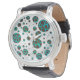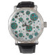 水玉模様カウブラウンおよびティール(緑がかった色)プリント 腕時計