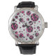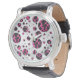 水玉模様カウホットピンクとブラックプリント 腕時計