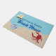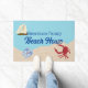 水(ボート付き)は砂(カニとビーチサンダル)に出会い、ビーチの家を歓迎するマットを家族の名前で。