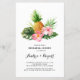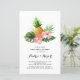 おもしろいとフェスティバルの熱帯リハーサルのディナー招待ピンクのハイビスカス、パイナップルと葉の水色のイラストを特徴とし、背部にトロピカルパターンにマッチ。この夏の招待は、任意の熱帯およびハワイアンをテーマにしたリハーサルのディナーのために完全に編集可能である。詳細を追加してパーソナライズ