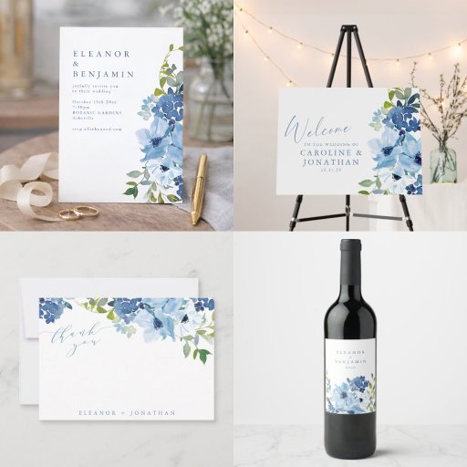 シックパーソナライズされたライトブルー水カラーフローラ結婚のカスタムワインラベル