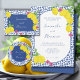水彩レモンと青い水彩タイルの上にピンクの花を持つ美しく新鮮な結婚式招待状