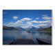氷河の国立公園写真。豪華な湖、山、青い空と雲の中のボートとデッキ。