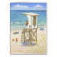 忙しく明るい午後で、単独ライフガードは彼の木の眺望のポストからの海岸線を捜します。 :: バーバラバイヤー著元の水彩画