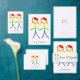 この結婚式招待状は、あなたの特別な日を正式に発表するための美しく心のこもったデザインを備えている。この図は、2人の女性がステッキのフィギュアの型枠で手を持っエレガントている様子を描いている。姿は美しい虹に彩られ、愛と多様性を象徴している。この招待は、あなたのお祝いを最初に見てゲストを提供しながら、あなたの文房具に結束し、意味のあるtouchを持ち込む素晴らしい方法であエレガントる結婚。