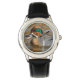 池で鳴き声を上げる緑の羽をしたティール(緑がかった色) 腕時計