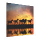 池と南西の夕日に野生の自由な馬 メタルプリント