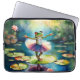 池の蓮の葉に乗ったカエルのバレリーナ踊り ラップトップスリーブ