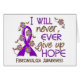 希望の感動的な気持ちを私と共有している間線維筋痛の認識度の決してあきらめ希望のTシャツ、服装を、ボタンをかけ、そして売買します対照的な文字のフォントおよび顕著な紫色の可憐な紫色およびチョコレート花と編まれる線維筋痛サポートリボンの特色にに紫色道は燃えません。