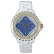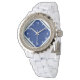 完全にこの腕時計でスタイリッシュに見ます。 全白のバンドを特色にして、この腕時計は白および海軍トリミングおよび白い数を用いるロイヤルブルーの顔を備えています。