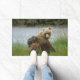 沿岸ブラウンベア種と三つ子。川に沿って長い草の中。この床マットは木製の床の質感フレームを持っている。文字と文字の色は任意の色に変更することができカスタムる。