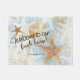 このWelcome Doormatは美しい沿岸のヒトデのプリントを持ち、1つの大規模で小さなリアリスティックなヒトデと他のいくつかの白でライトブルーの背景にオーバープリントされ、スクリプトフォントにようこそ。この沿岸のヒトデのコレクションで他の製品を探す。文字読:ようこそ私たちのビーチハウス。君のカスタマイズ苗字は簡単だ。デザインはJenn's Emporium。