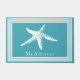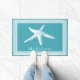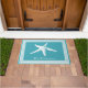 沿岸白いヒトデはフレーム及び海の青を並べます ドアマット