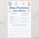 沿岸の赤ちゃんシャワーテーマにおもしろいtouchを追加パーソナライズされたこの沿岸の赤ちゃんシャワーベビー予測とアドバイスカード。ビーチの赤ちゃんシャワーテーマ、海の赤ちゃんシャワーテーマ、または夏の赤ちゃんシャワーに最適で最高の、ベビーの希望や推測をボード上で共有できる。夏の赤素晴らしちゃんシャワーテーマのための記念の酒と活動は、このカードはまた、ボードの赤ちゃんシャワーアイディアや他の夏の赤ちゃんシャワーアイディア上のベビーに完全に適合する。
