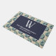 beachyなって下さい! この素晴らしい貝殻の玄関マットが付いているあなたの通路を飾って下さい。 このかわいらしい沿岸玄関マットは青い貝殻のパターン(の模様が)あるな濃紺および白家族のモノグラムを特色にします。