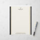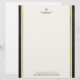 高級感のある法律事務所のロゴと、ライトアイボリークリーム色の背景にブラックの模造革とゴールドのラインのボーダー、貴社のカスタムテキストを入れた、エレガントなレターヘッドテンプレート。 あなたの情報を入れてカスタマイズ! 弁護士、法律事務所、公証人、アドボケート、法律アドバイザー、その他法律関連サービスに最適。