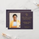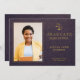 高級モダンエレガントダークパープルindigo革ルックと金ゴールドロースクール卒業発表カードのテンプレートあなたの写真と文字とカスタム。++++++++++簡単を両面でパーソナライズ!