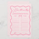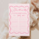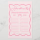 この波状のピンクの弓のお祝いパーソナライズされたを忘れられないブライダルシャワーを推測エイジのゲーム!バレンタインのブライダルシャワーアイディアに最適な、このゲームはあらゆるピンクのブライダルシャワーやピンクのブライダルシャワーアイディアに合う。結び目のブライダルシャワーテーマを補完するか、結び目のブライダルシャワーテーマを結ぶ。結び素晴らし目のブライダルシャワーのアイディアはキスさよなら恋しく思、ピンクのバチェロレッテでかわいらしはバチェロレッテと弓のブライダルシャワー!