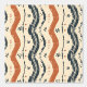 この作品は、素朴な手描きの波線パターンとフローラモチーフをシンプル特徴としている。デザインはクリームの背景自然にテラコッタと深いブルーの暖かいカラーパレットを使用し、自然な動きの感覚をオーガニック喚起。不規則な質感の線と形は手与え作りの芸術的な形です。一方、波のリズミカルな流れは心地よいダイナミックな視覚効果を生み出す。散乱したフローラと幾何学的な要素は、全体の構成に微妙な詳細と魅力を追加する。