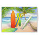 海岸にそして忍耐強く"大きいKahunasを待つやし間に、坐るカラフルなサーフボード!" :: バーバラバイヤー著元の水彩画