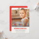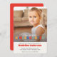 スタイリッシュエレガントな幼稚園の卒業式パーティーの招待状。大きな中央の写真と混色の文字の重なり合ったヘッダー。ミニマモダンリストのタイポグラフィと構成。洗練された若々しい。教育の旅祝の素晴らしい一歩への素晴らしい形見の招待。