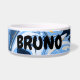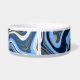 青、黒と白の霜降りの流動的なパーソナライズされたアートドッグボウル。