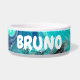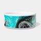 青、ターコイズ、白の霜降り油パーソナライズされたのアートドッグボウル。