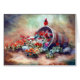 Brendaによるオリジナルの油絵からオスの(鳥)ショウジョウコウカンチョウのThourは側面でひっくり返た花のバレルでとまりました。 Brenda Thour 2005年著作の版権。