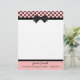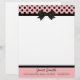 ピンクのグラフィックが付いているかわいらしいレターヘッド文房具、黒い水玉模様ヘッダーと、中間の黒いボーダーそして黒い弓と。 黒いバンドは、底で個人化なること準備ができたカスタムで黒い文字が付いているページのピンクのフッターの部品のためのボーダーとして、機能します。 かわいらしいレトロけれどもスタイリッシュな一見。