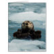 海の飾カワウソ(エンヒドラルトリス)の像が背中に浮かび、アラスカのプリンス・ウィリアム・サウンドの氷山に囲まれている。Ted Raynorによる