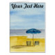 海シンプルにビーチの椅子とビーチの傘を歓迎する水の色の風景。自分カスタマイズの文字に変えて!