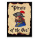 リンダ・ベイシンガー絵画ー・ペックの海賊キャプテンの経歴。文字読「海の海賊」。ルネッサンス素晴らしスが失敗し楽しむて水洗い冒険をする人のためのカード。© Linda Baysinger Peck All Rights Reserved