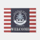 海の錨、ホイール、 ネイビーブルー、赤のストライプ ドアマット