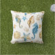 海の青及び金ゴールドのタツノオトシゴの屋外の装飾用クッションの下。
