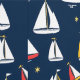 深いの青い背景に様々な色の帆船を配航海の置したパタよくはしゃぐーンで、魅力の世界に帆を張る。あなたのデザインに沿岸シックのtouchを追加するのに最適。ファブリック、壁紙、またはテーマ別プロジェ航海のクトに最適。