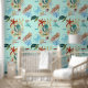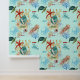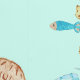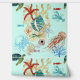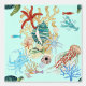 水色のウミガメ、サンゴ、貝殻、青いカニ、ロブスター、魚、クラゲなど、ジプシーアートデザインが海の下に住む。